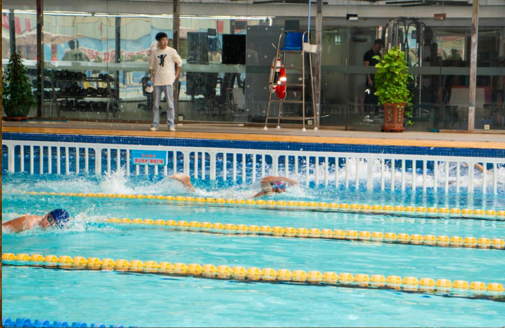 本次比赛设有男子甲乙组和女子甲乙组50米蛙泳、100米蛙泳、50米自由泳、100米自由泳五个项目,吸引了众多游泳爱好者踊跃报名参赛。比赛现场,泳池边人声鼎沸,同学们的加油助威声此起彼伏,为比赛增添了一份热烈的氛围。