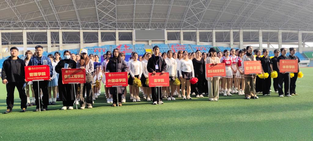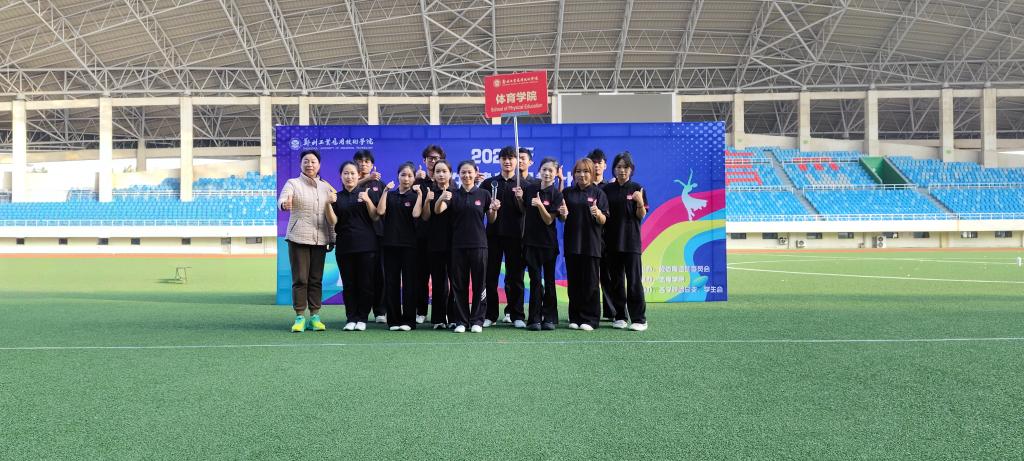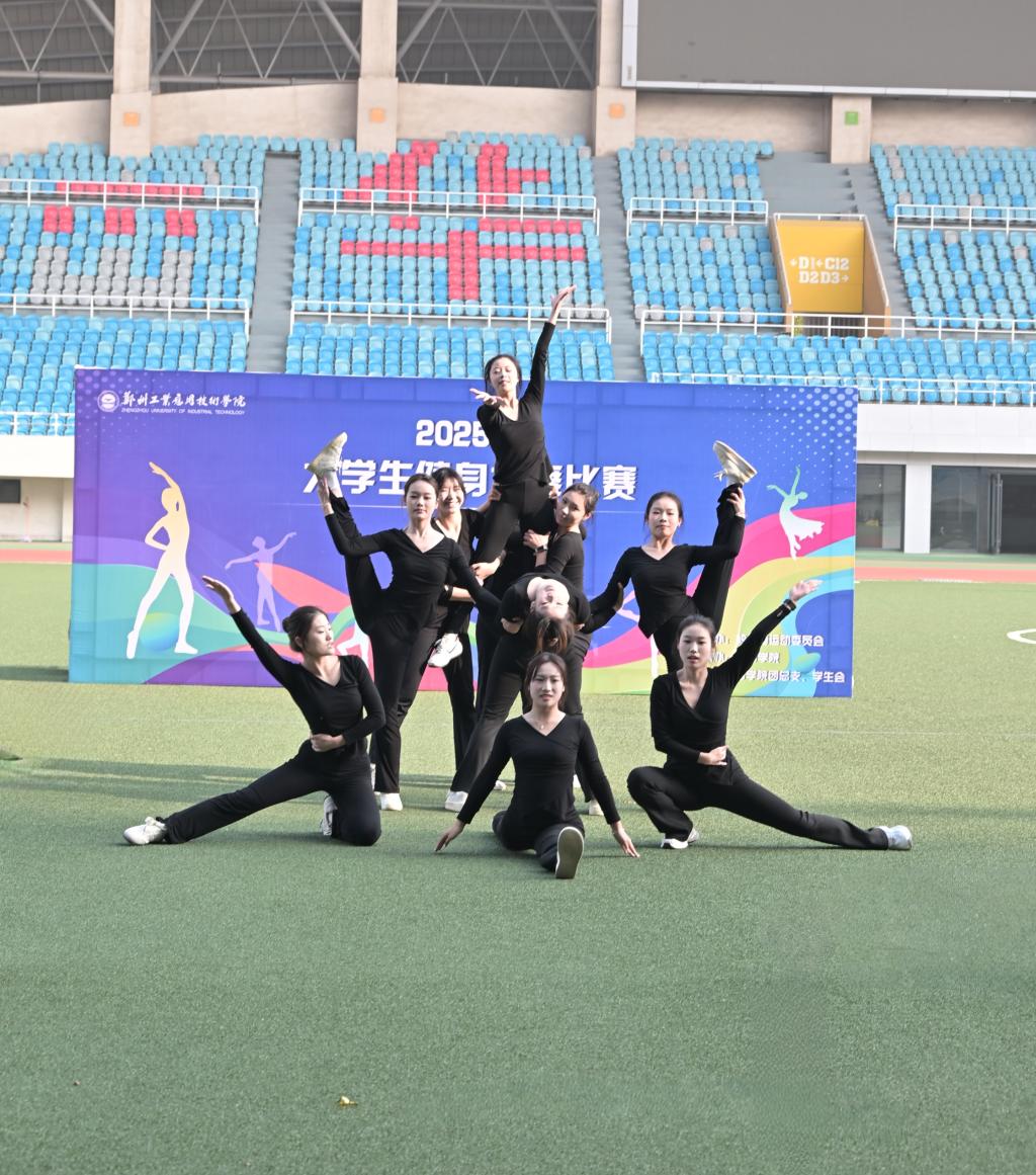 (图、文李瑞芳)为丰富校园体育文化生活,激发学生锻炼热情,深化“健康中国” 理念融入校园日常,郑州工业应用技术学院 2025 年大学生校园健身操舞大赛于 10 月 28 日下午在体育场隆重举行。各学院经过前期选拔,共派出8支代表队同台竞技,百余名师生到场观赛。
