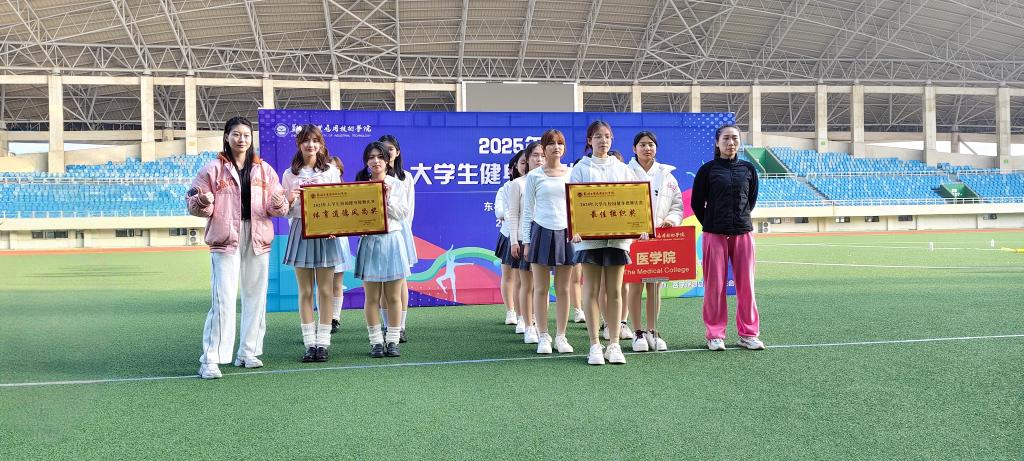 随着音乐响起,参赛队伍依次登场。选手们身着统一服装,以整齐有力的动作、创意十足的编排展现运动魅力,每段表演都赢得全场掌声。经过两小时激烈角逐,体育学院凭借精准的动作把控与饱满的精神状态斩获一等奖;音乐学院、信息工程学院获二等奖;外国语学院、医学院一队、软件学院等队伍摘得三等奖。管理学院与医学院二队分别荣获体育道德风尚奖和最佳组织奖。