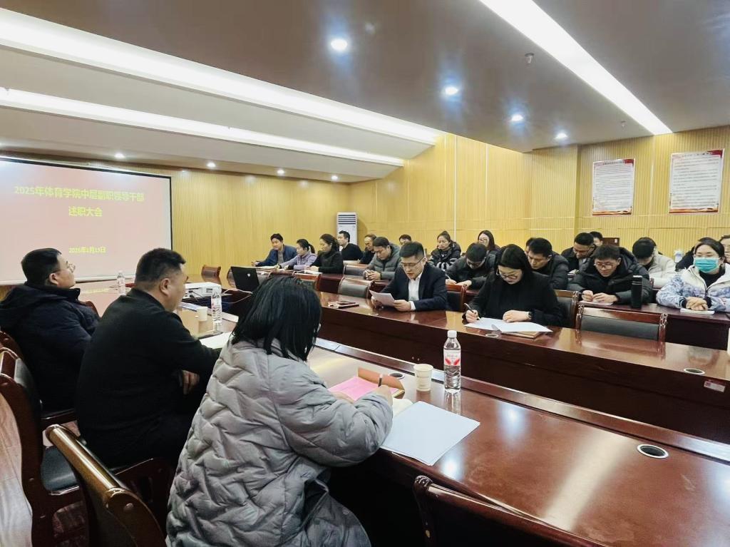 (文/卢佳 图/王保停)为深入贯彻落实学校干部队伍建设工作要求,全面检验中层副职干部履职成效,进一步压实责任、凝聚共识、激发干劲,1月13日,体育学院在107会议室召开2025年度中层副职干部述职测评大会。学校人事处副处长吕萌花、考核与政策法规科工作人员张玉伟到会指导,学院领导班子及教职工代表参会,会议由副校长、体育学院院长刘山玉主持。