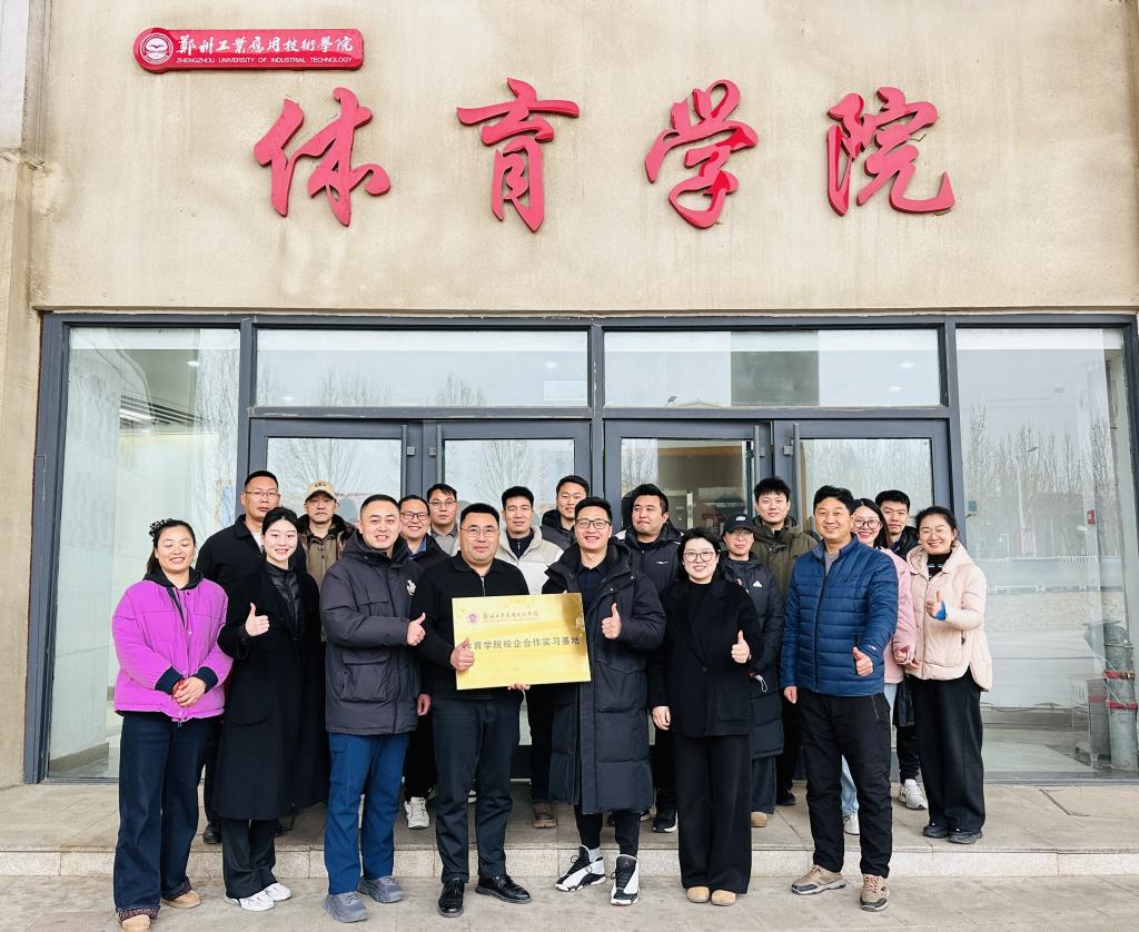 (文、图/李铁心)2026年1月14日下午,郑州工业应用技术学院体育学院与北京爱尚鑫嘉境体育文化发展有限公司校企合作实习基地签约授牌仪式顺利举行。郑州工业应用技术学院副校长、体育学院院长刘山玉教授,副院长王金瑞、马宏奎,北京爱尚鑫嘉境体育文化发展有限公司区域总监陈鹏、经理李治杰,各教研室主任及骨干教师出席活动。