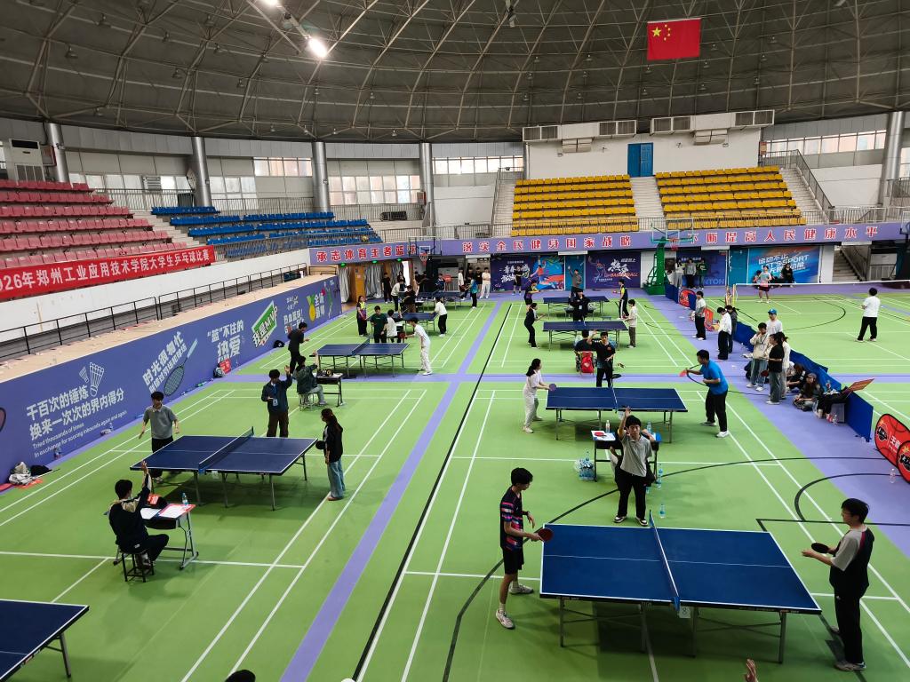 为丰富校园文化生活,增强学生身体素质,展现学子昂扬向上的精神风貌,3月24日至25日,由校体育运动委员会主办、体育学院承办的郑州工业应用技术学院2026年乒乓球比赛在东校区红体馆圆满举行。全校13个二级学院的乒乓健儿齐聚赛场,以球竞技、以赛聚力,上演了一场场精彩绝伦的乒乓对决。