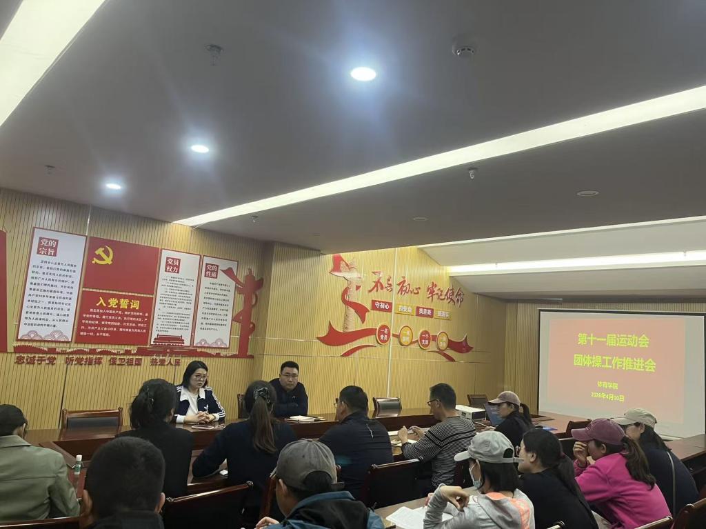 (文/卢佳 图/王保停)4月10日,体育学院在学院107会议室召开第十一届运动会团体操工作推进会,统筹推进各项筹备工作。运动会团体操编导、筹备组负责人参加会议,教学科研副院长王金瑞主持会议并就会议流程、筹备落实提出具体要求。