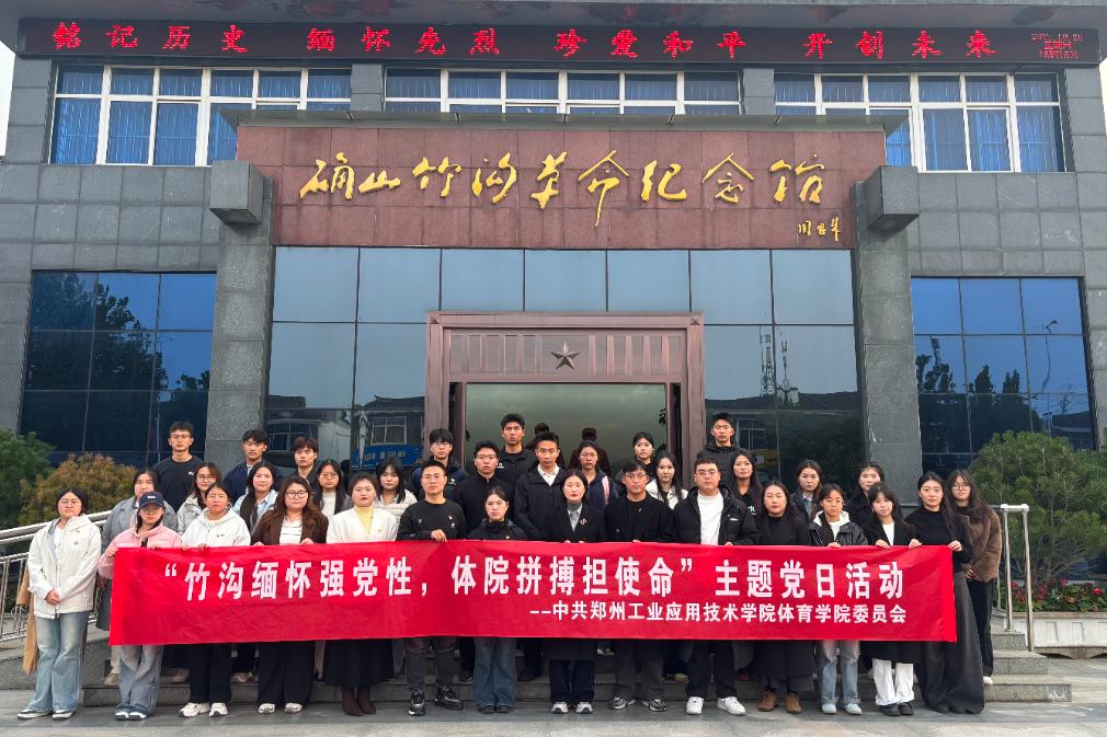 (图/邢新华 文/薛亚妮)10月26日,郑州工业应用技术学院体育学院党委以“竹沟缅怀强党性,体院拼搏担使命”为主题,组织党员师生代表开展主题党日活动。活动按计划首站前往杨靖宇将军纪念馆,后赴竹沟革命烈士陵园,通过实地研学让党员师生在红色教育中强化党性修养、接受精神洗礼。