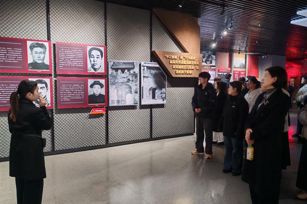 在纪念馆内,全体党员驻足沉思,认真聆听陵园工作人员讲述竹沟根据地的革命历史,共同追忆烽火连天的峥嵘岁月,深刻感悟革命先辈舍生取义、为国奉献的崇高精神。