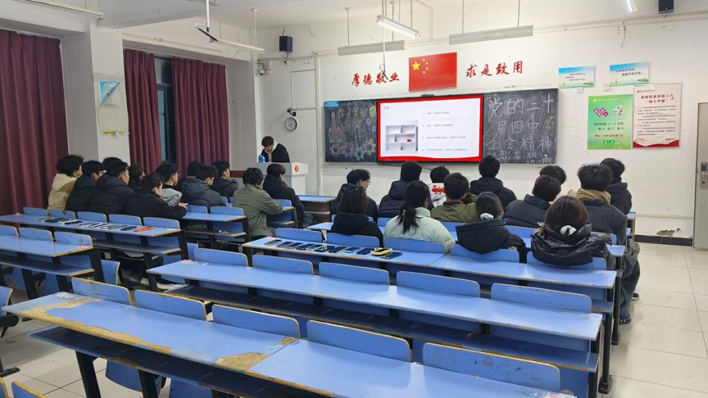 宣讲会上,主持人刘翔宇以清晰的逻辑框架、严谨通俗的语言,围绕党的二十届四中全会的重大历史意义、核心精神实质、重点部署要求等关键方面展开系统解读。他紧密结合新时代教育事业发展实际与文化建设使命任务,深入剖析全会提出的新思想、新论断、新举措,着重阐释全会对教育高质量发展、文化自信自强等工作的战略指引,为在场学生搭建起精准理解、深刻把握全会精神的理论桥梁。互动交流环节中,刘翔宇耐心细致解答学生疑问,引导同学们结合自身学习成长与生活实际,畅谈对全会精神的理解感悟与实践思考,现场氛围热烈有序、融洽高效。