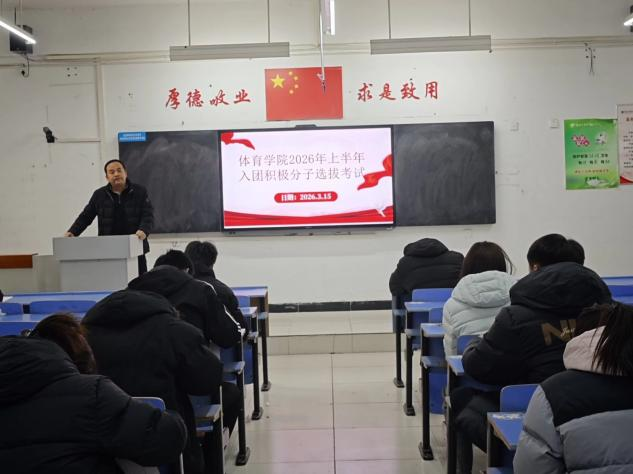 (图、文薛亚妮)为严把团员发展“入口关”,加强青年学生思想政治教育,提升入团积极分子理论素养与思想觉悟,3月15日,体育学院在文华楼1‑101、文化华楼1‑105教室组织开展2026年入团积极分子理论考试。本次考试由薛亚妮、高广两位老师担任监考,全体入团积极分子有序参加、诚信应考。