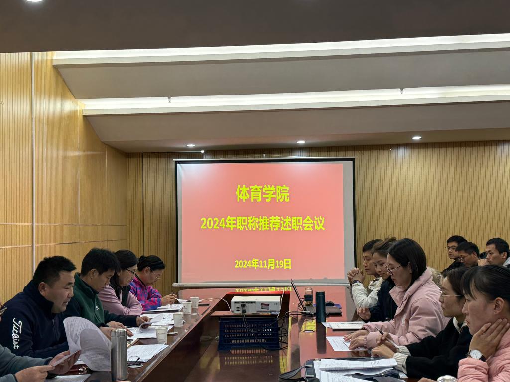 (文/卢佳 图/卢佳)根据河南省教育厅及学校相关文件要求,11月19日下午,学院召开了职称推荐述职会议、职称推荐资格审查会议;会议由体育学院院长刘山玉主持,体育学院名誉院长杨建国教授、体育学院教学科研副院长王金瑞、评审委员会成员以及2024年全体待审教师参加会议。
